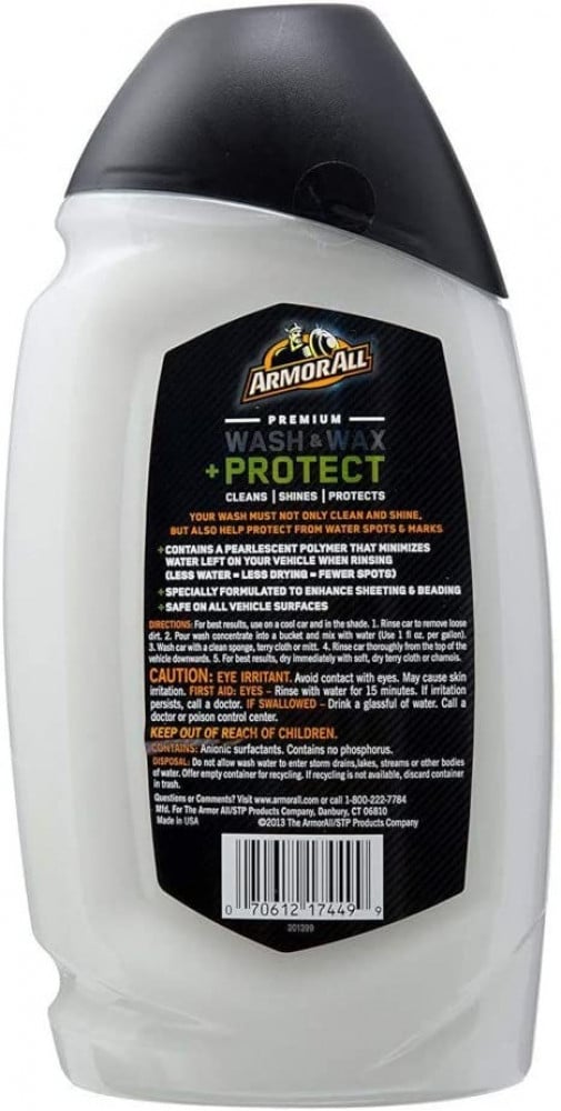 • يحتوي على بوليمر لؤلؤي يقلل من الماء المتبقي على سيارتك عند الشطف (مياه أقل = وقت جفاف أقل = بقع أقل)